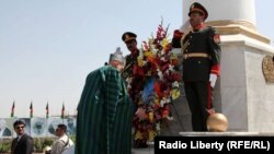 (افغان ولسمشر حامد کرزي نن د دفاع په وزارت کې د ازادي منار مخې ته د ګلونو په ایښودلو سره د هېواد د څلور نویمې کلیزې جشن ونمانځه.