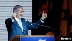 د اسراییل صدراعظم بنیامین نتانیاهو پرون خپلو پلویانوته په تل ابیب کې خبرې وکړې او هغوي ته یې، مخکې له مخکې، د لیکود ګوند د بري مبارکي وویله .