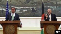 اشټون کارتر په کابل کې د افغانستان له جمهور رئیس اشرف غني سره په یوې ګډه خبري ناسته کې وویل، له تروریزم سره په مبارزه کې د افغانستان ملاتړ ته ژمن دی.