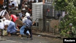 ځينو اعتراض کوونکو شعارونه ورکول چې په ميانمار کې عامه وژنه بنده کړئ.