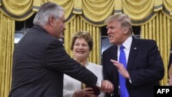 د امریکا متحده ایالاتو جمهور رئیس ډونالد ټرمپ رکس ټېلرسن ته د لوړې ورکولو پر مهال وویل چې دا یې وخت دی څو د بهرنیو چارو په اړه په یوه روښانه نظر تمرکز وشي.