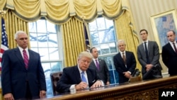 د ولسمشر فرمان د ایران، عراق، لیبیا، سومالیا، سوډان او یمن اتباع د ۱۲۰ ورځو لپاره امریکا ته له داخلېدو منع کول او د سوریایانو د کډوالۍ پروسهیې هم د نامحدود وخت لپاره درولې وه.