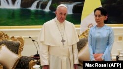 د نړۍ د کاتولیک مسیحیانو مشر دا څرګندونې نن سې شنبې «۱۳۹۶ کال د لیندۍ ۰۷» د میانمار یا پخوانۍ برما په پلازمېنه نایپیداو «Naypyitaw» کې د دې هېواد له ملکي مشرې او د نوبل د سولې د جایزې له ګټونکې انګ سان سوچي سره له خصوصي کتنې وروسته په وینا کې وکړې.