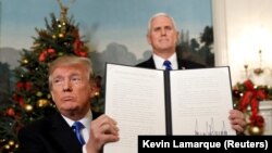 د امریکا ولسمشر تېر ماښام په یوه تاریخي وینا کې بیتالمقدس د اسرائیلو د پلازمېنې په توګه په رسمیت وپېژانده او ویېویل چې د امریکا سفارت به له تلابیب څخه بیتالمقدس ته انتقال کړي.