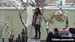په یوه وېډیو کې یوه ښځه چې نومیې نهدی په ډاګه شوی، ښکاري چې لوڅ سر د تهران د انقلاب په واټ کې د کانکرېټ څخه په جوړ شوي لوړه ولاړه ده.