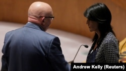 په ملګرو ملتونو کې د روسیې سفیر واسیلي نبنزیا د مېرمن هیلي د څرګندونو په ځواب کې وویل، د دې تورونو هدف دا دی چې د سوریې حکومت د کیمیاوي وسلو په کارولو تورن شي، په داسې حال کې چې د دې کار عامل قطعاً نهدی پېژندل شوی.