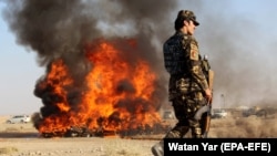 په کندهار کې له ۲۰ زره کېلو ګرامه زیات نشهيي مواد وسوځول شول