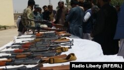 "دغه زیات شمېر سپکې او درنې وسلې چې تاسو ګورئ موږ له یوه زورواکي نیولي، دغه زورواکی عتیق الله نومېږي چې پهدغه ولایت کې د یوې امینتي پوستې قوماندان دی، له قانونه په سرغړونې مو نیولی دی."