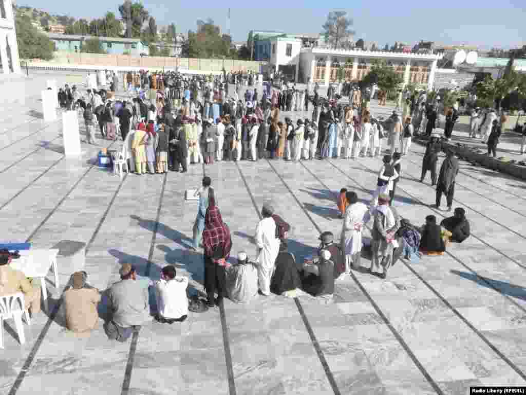 د خوست ښار د یعقوبیو اډې جومات ته سهار وختي د سلګونو کسانو اوږد کتار جوی شوی وو.
