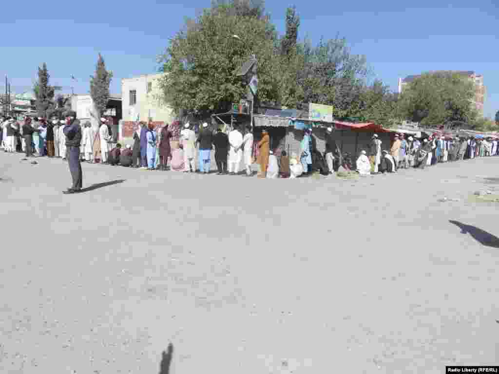 د خوست ښار د یعقوبیو اډې جومات ته سهار وختي د سلګونو کسانو اوږد کتار جوی شوی وو.