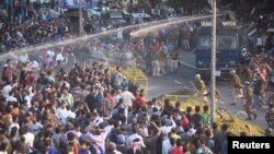 پولیسو ویلي اړ شول چې په لاریونوالو یې اوښکی بهوونکی ګاز او اوبه وشیندي.