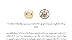 د افغانستان او امریکا ترمنځ په افغانستان کې د سولې د ټینګښت په اړه د ګډې اعلامیې یوه برخه.