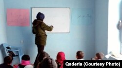 قدریه رضايي د کابل په يوه کور کې له زدهکړو د بې برخې نجونو ته درس ورکوي.