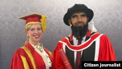 د بریتانیا اېسېکس/ پخواني ټویټر پوهنتون د دغه هېواد د معلولینو د ځغاستې او لامبو د ملي لوبډلې دې نابینا افغان لوبغاړي ته نېږدې اوونۍ مخکې د انګلستان د پاچا د استازې په حضور کې دا ډوکټورا ورکړه.